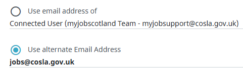 For example, if an email is configured to come from "jobs@cosla.gov.uk"