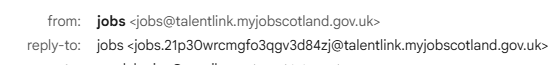this will be received in the candidates mail box as "jobs@talentlink.myjobscotland.gov.uk"